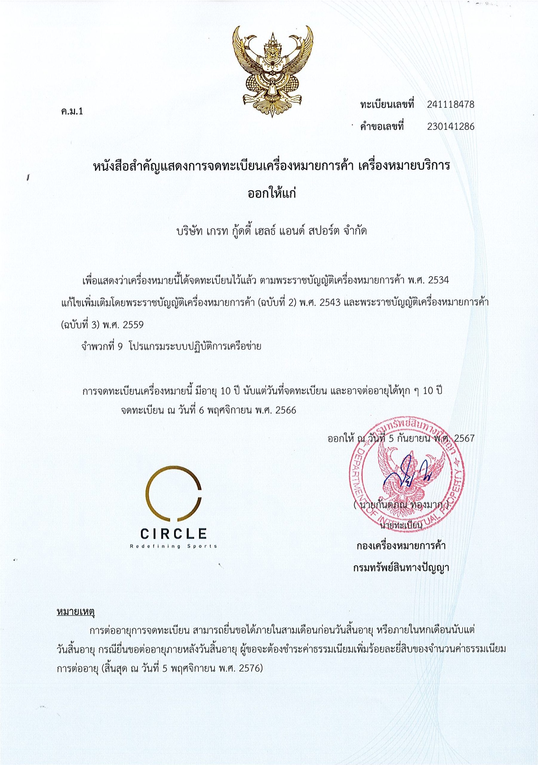 เครื่องหมายการค้า CIRCLE จดทะเบียนถูกต้องตามกฎหมาย กับกรมทรัพย์สินทางปัญญา
